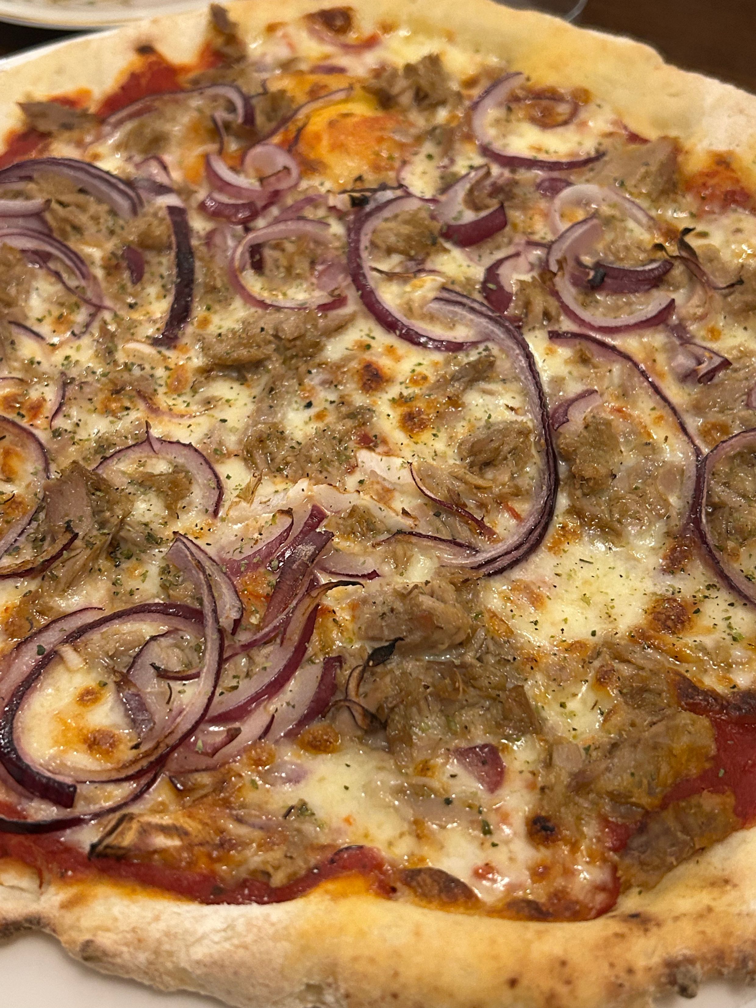 Pasta Bolognese: Die Pasta Bolognese sind ein klassisches italienisches Gericht. Sie bestehen aus Linguine, einer Sauce mit Hackfleisch, Tomaten, Zwiebeln und Gewürzen. Das Gericht wird warm serviert und oft mit Parmesankäse bestreut. Es schmeckt herzhaft und würzig. Das ist ein Lieb-lingsgericht für viele Menschen. Pizza: Diese Pizza wird im Holzofen gebacken, was ihr einen besonderen Geschmack verleiht. Sie besteht aus einem dünnen Teig, Tomatensosse, Käse, Thunfisch und roten Zwiebeln. Sie schmeckt leicht salzig und der Teig ist schön knusprig. Man kann sie das ganze Jahr über essen. |
